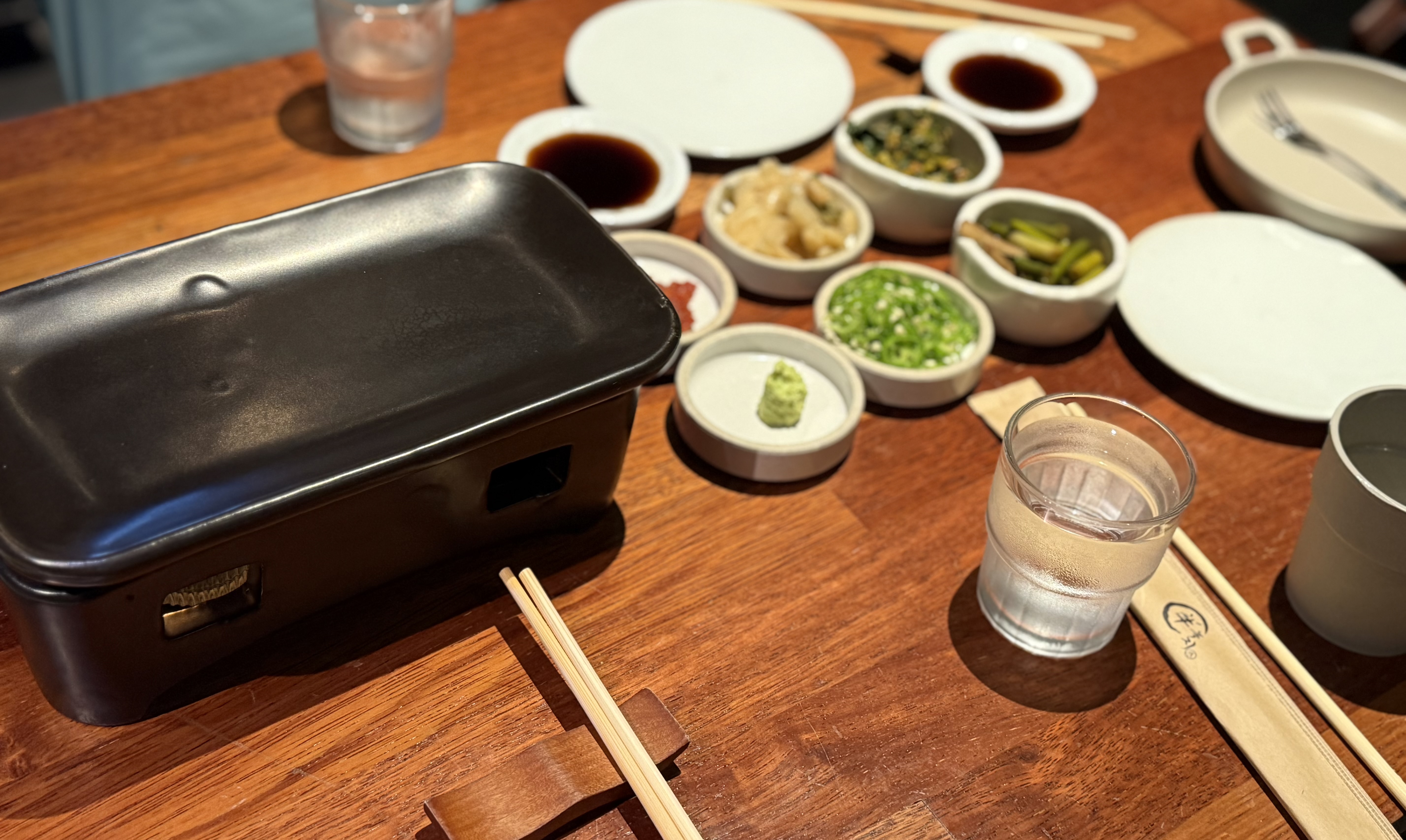 미니화로는 너무 깔끔하고, 이뻤어요~ 제가 선물을 해본 적은 있는데, 미니화로를 사용해서 먹어본 적은 처음인 것 같아요~ 물잔과 그릇들도 너무 깔끔했어요^^