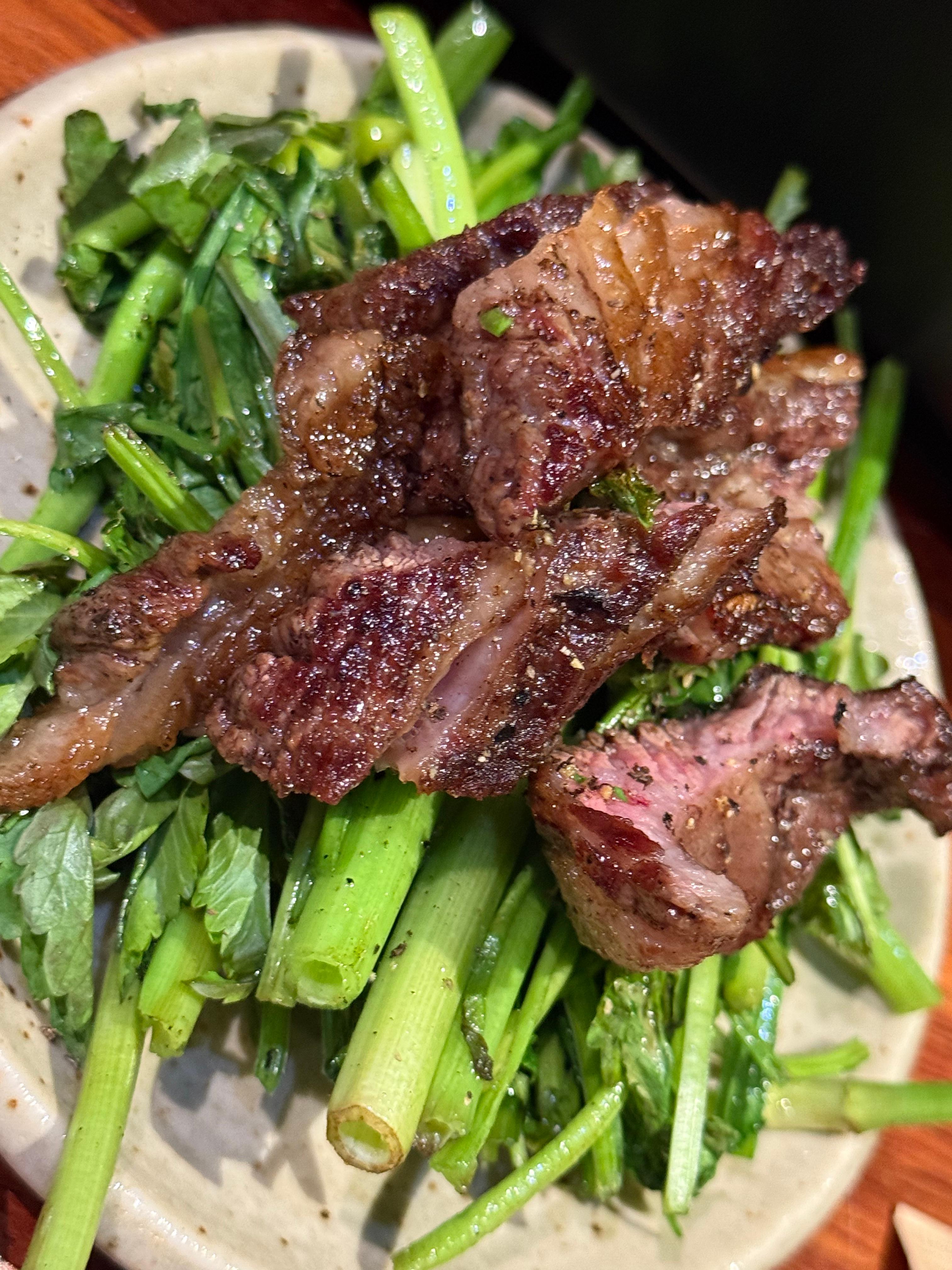 미나리도 구워주시고, 그 위에 올려주신 양고기는 너무나도 잘 어울렸어요.