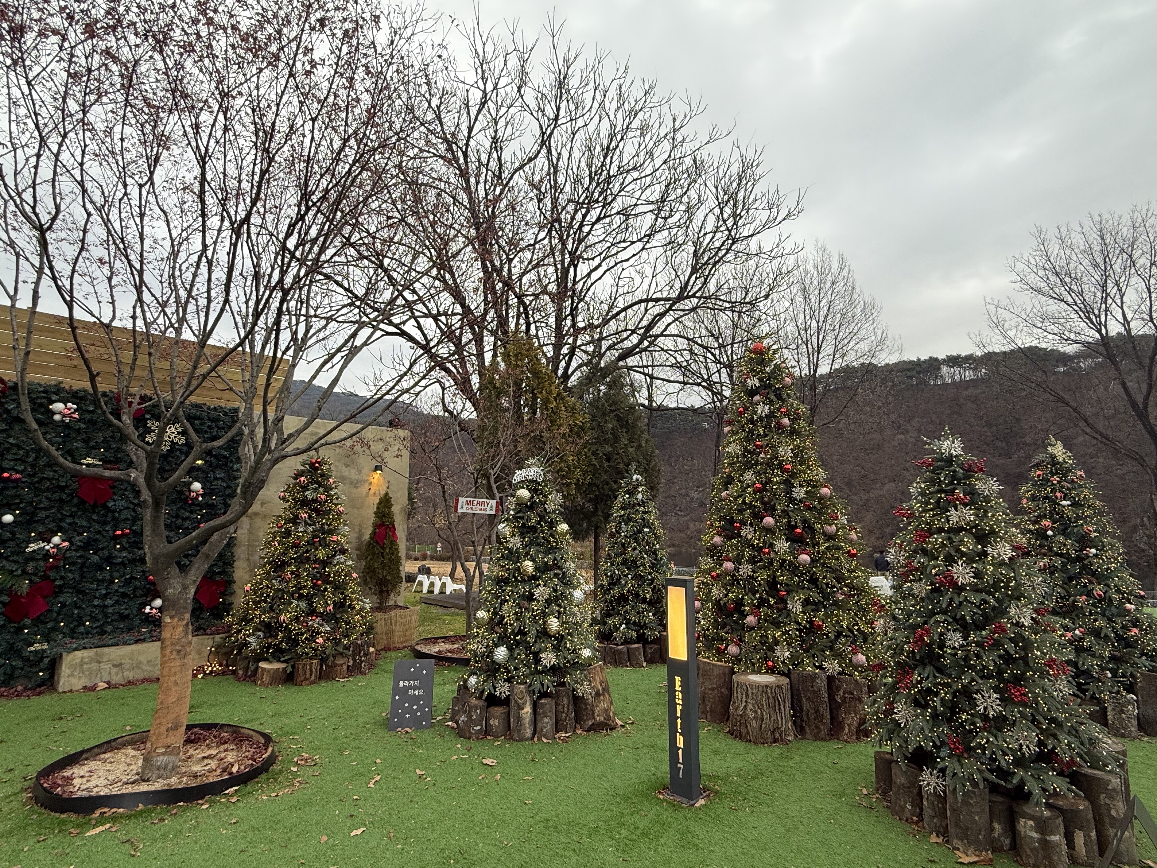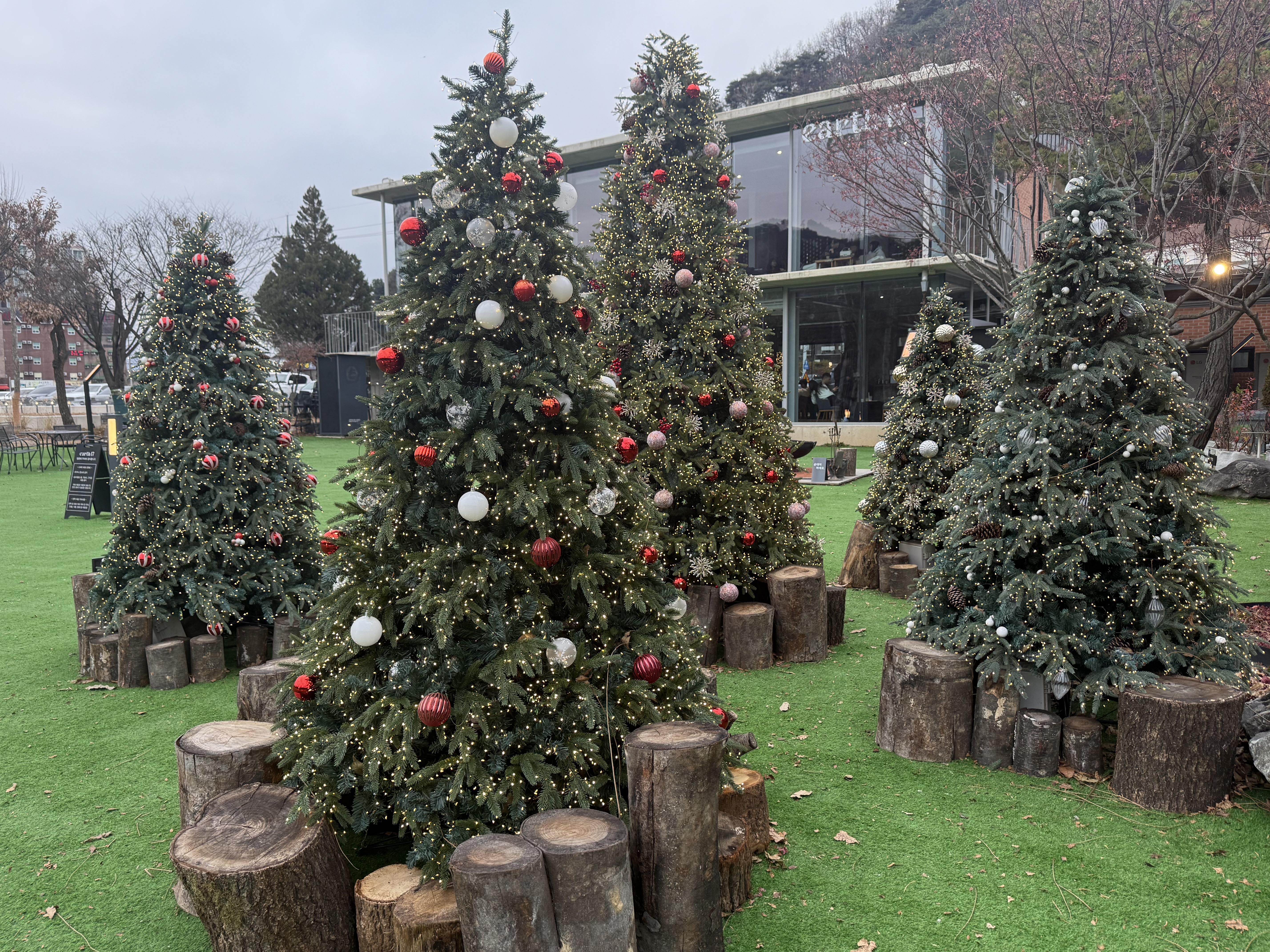 춘천닭갈비를 먹고 "크리스마스카페"로 검색해봤는데 야외공간에 트리가 이쁘게 잘 되어있는 것 같아서 가봤어요~