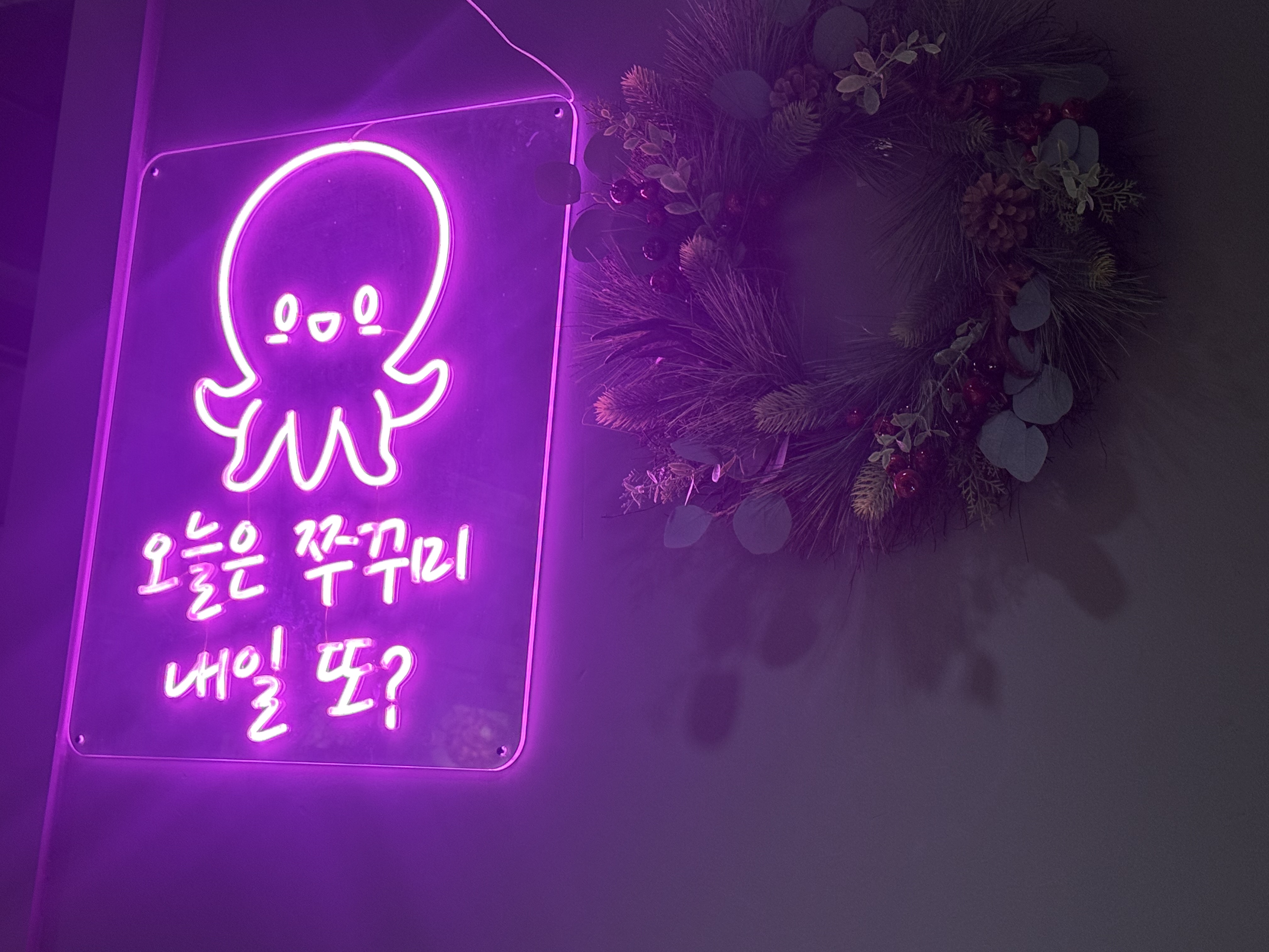LED 레온간판도 너무 귀엽더라고요~~~ 곧 크리스마스라 그런지 리스도 달아두신 것 같았어요^^