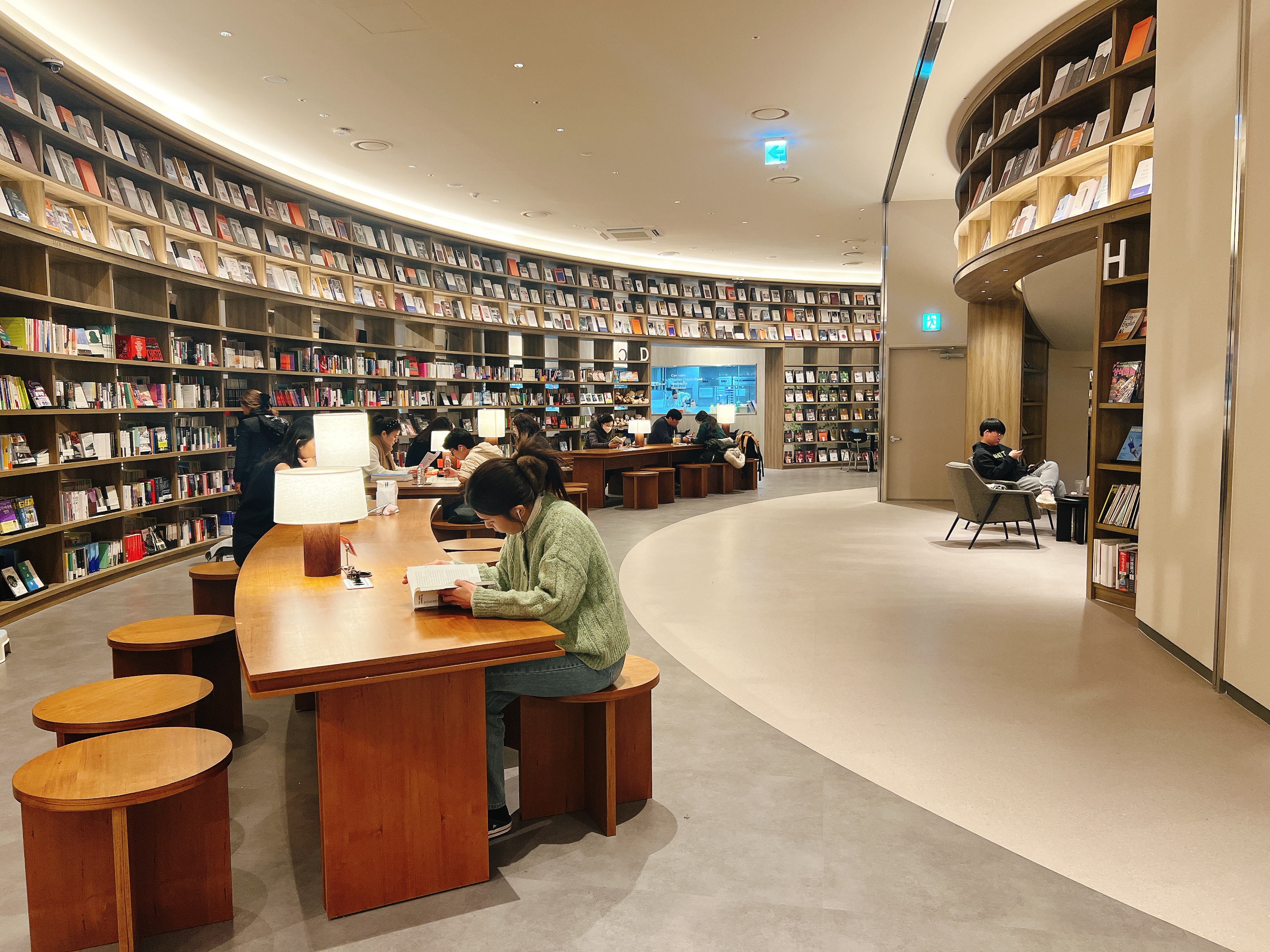 지하 공간에는 책을 읽을 수 있는 공간이 있었는데, 평일 오후시간인데도 불구하고 많은 사람들이 책을 보고 있었어요. 아이와 함께 온 가족분들도 보였는데, 아이들과 앉아서 책도보고 시간을 보내면 좋을 것 같아요.